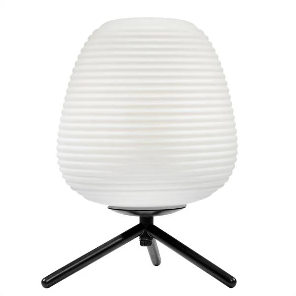 The Astrid III LED table lamp is constructed of white glass and features a 3-legged black base. Its lantern inspired shade design emits a beautiful ambient light. This lamp also pairs well with the Astrid I and Astrid II LED lamps. It uses a E27 LED Bulb G45 5 Watts.