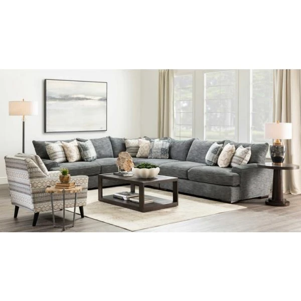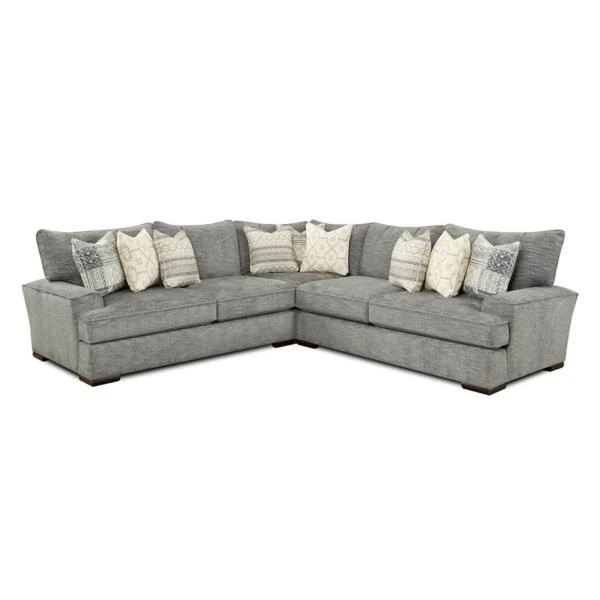 The Braden 3 Piece Sectional is generously scaled for the ultimate in seating comfort. Upholstered in a soft to the touch fabric in Slate with a collection of patterns of slate, teal and copper. Nine toss pillows included!