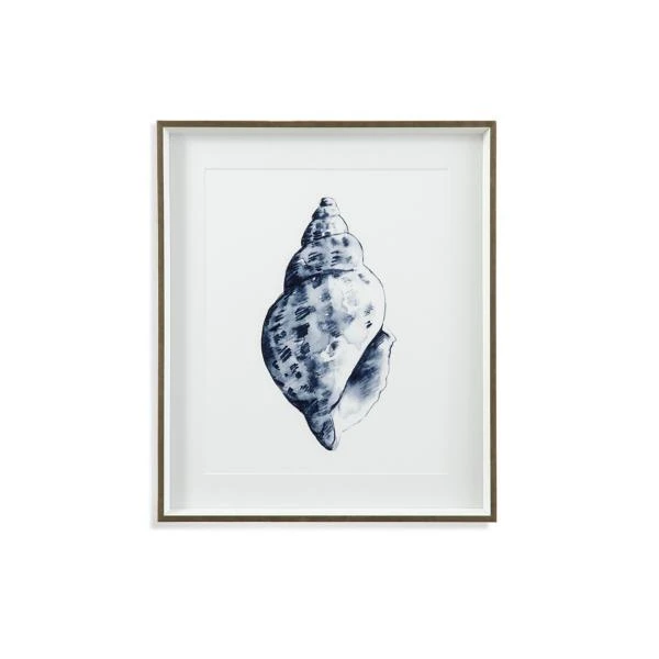 By The Sea II Wall Art features the top side of a multi tone blue and white shell on fine art cotton rag paper. It is a print under glass, with a single white mat and a 1″ white molding frame with a champagne face. Made in the USA. D-ring or sawtooth picture hanging hardware included. Other companion pieces that can be hung with this include By The Sea Wall Art pieces I, III & IV.