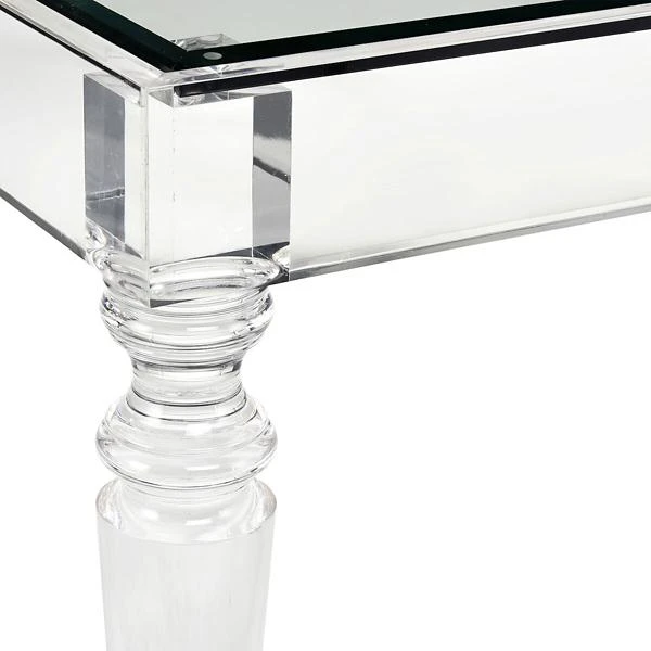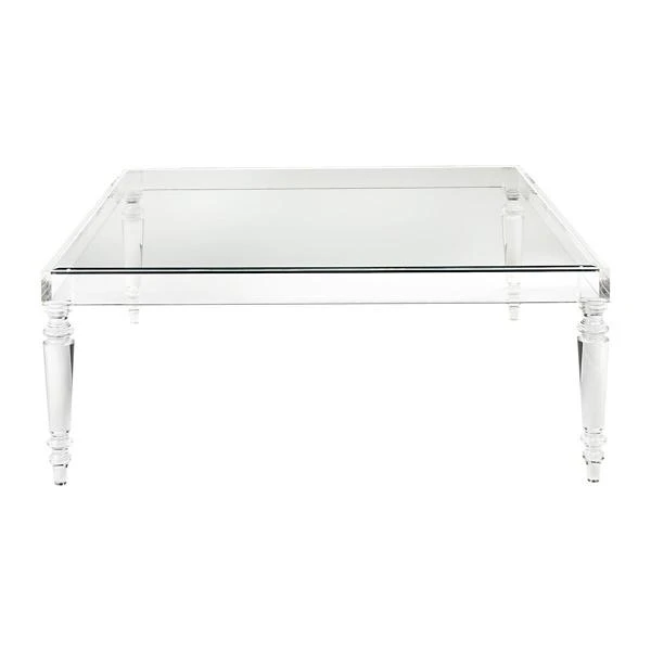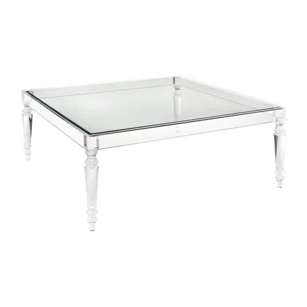The Clarendon Square Coffee Table is crafted using acrylic and glass, giving it a light and airy feel with scale that crates drama. This is the perfect piece to bring your space to life without overwhelming it.
