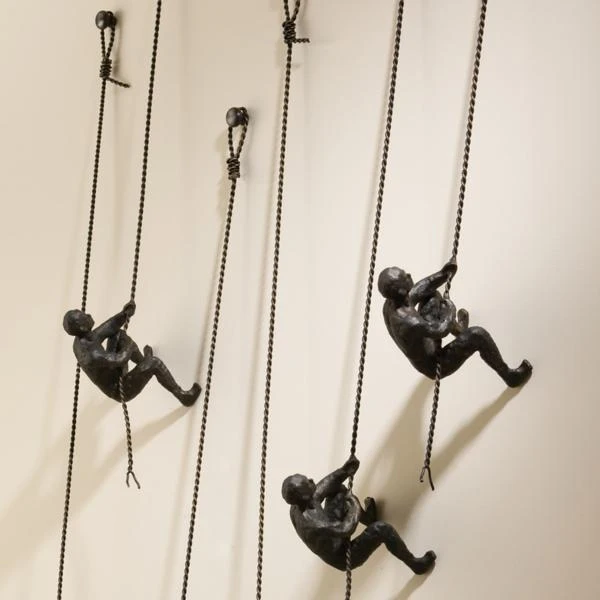 Crafted from solid cast iron in a bronze finish, the Climbing Man Wall Decor perfectly meshes a more industrial style while remaining a subtle, understated piece that can go on any wall. Each one sold separately.