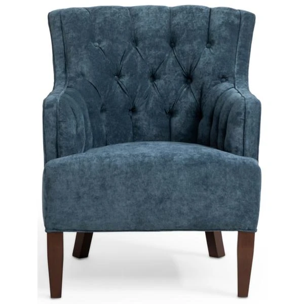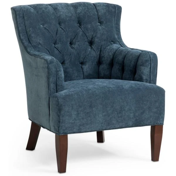 The Grace chair is full of elegant detailing. The deep button tufting on the inside back and arms. The beautiful shaping of the arm with its gentle slope. The elegantly tall legs that add a modern appeal to a traditional chair. In a blue fabric with soft texture for showing off every detail in radiant color.