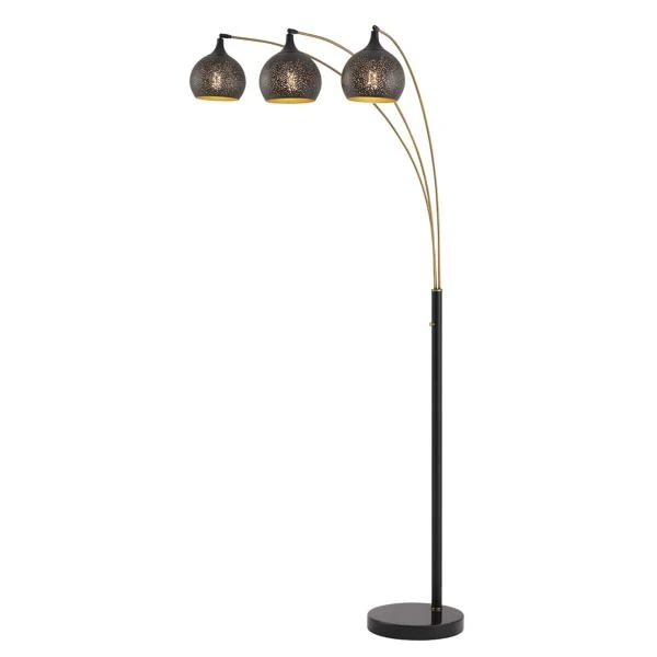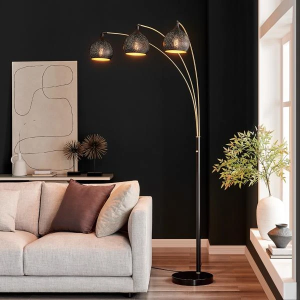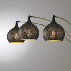The Kiara lamp is a 3-lite arch lamp that features 3 black shades with gold accents. In addition, this lamp features a unique speckled design on the lamp shades that creates beautiful ambient lighting. It uses 3 E27 Type A 60 Watt lightbulbs.