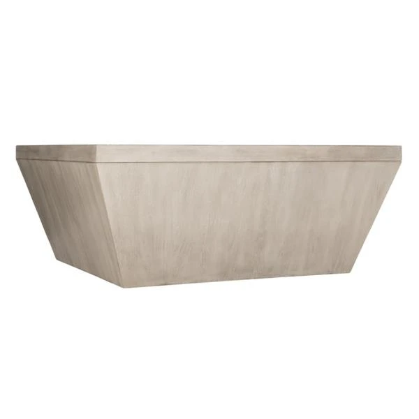 Crafted with flat cut white oak veneers in a cerused greige finish, the Landers Coffee Table from Bernhardt features a simple and modern silhouette that starts with a fancy face, square top into an inverted form that tapers down to the floor. This coffee table also features hidden casters for easy mobility.