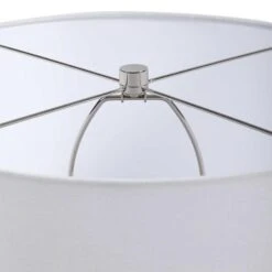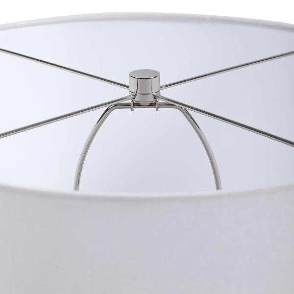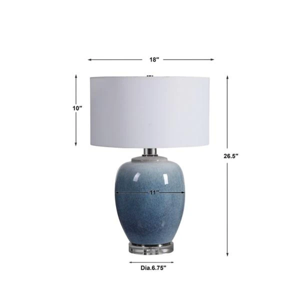 The Lane table lamp is made of ceramic featuring a cobalt and aqua blue finish which transitions into a light Ombre blue. Additionally, it includes Polished Nickle accents and a crisp white linen drum shade. It uses a E26 150-watt lightbulb.