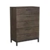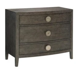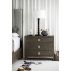 Update the aesthetic of your master suite with The Linea Bachelor’s Chest. Crafted with a white Oak and Ash wood, this piece features a cerused charcoal finish for an understated look. This piece features three drawers with dovetailed front and backs and is decorated with textured graphite finished handle pulls.