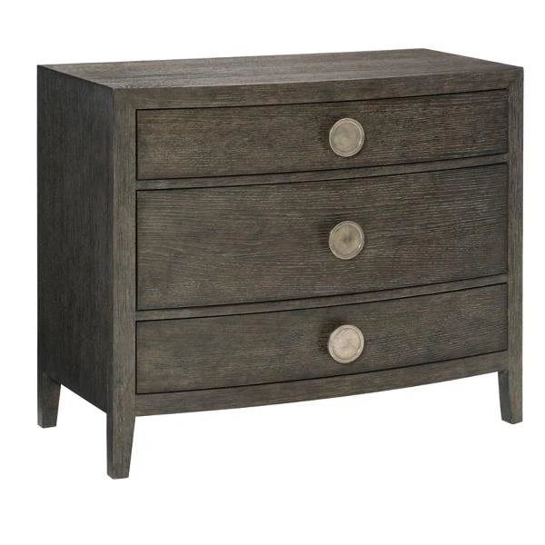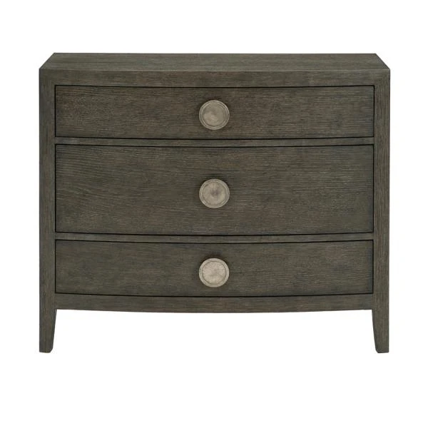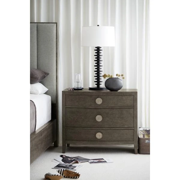 Clean lines. Casual finishes. Primal forms. Linea by Bernhardt pushes the boundaries of what a rustic modern furniture collection can be, ultimately delivering a sophisticated sense of style for today’s homes. Linea’s secret is a commitment to contrast and drama between its unique finishes and materials, allowing the group to break all the rules and still feel fully refined. wire brushed oak veneers with Cerused Greige and Cerused Charcoal finishes partner elegantly with cast aluminum in a Textured Graphite finish found on metal accents and hardware, as well as Black Forest marble seamlessly integrated into pieces. Somehow, the surprises keep coming: bow fronts, geometric shapes, and asymmetrical forms are present, as are metal bands, channeled fabrics, and faceted wood designs. The finishing touch is the unique hardware that gives the collection’s case pieces a jewelry-like feel. with its flawless artistry and understated elegance, Linea sets a new standard for rustic modern collections.