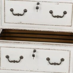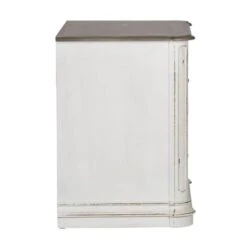 Displaying a unique blend of European influences the Magnolia Manor Home Office Collection features a warm antique white finish and artistic distressing on poplar and rubberwood solids with white oak and birch veneers. The Magnolia Manor Jr. Executive Lateral File features French and English dovetail construction, file drawers with full extension metal side drawer glides and hardware in an antique pewter finish.