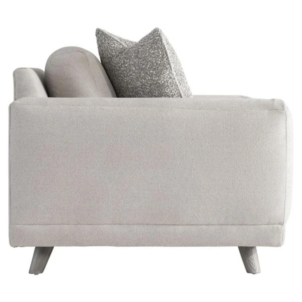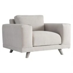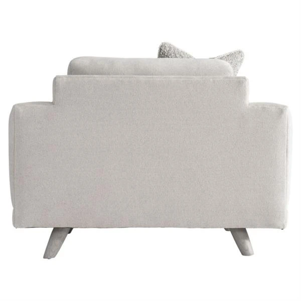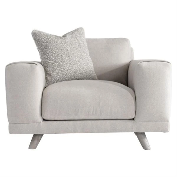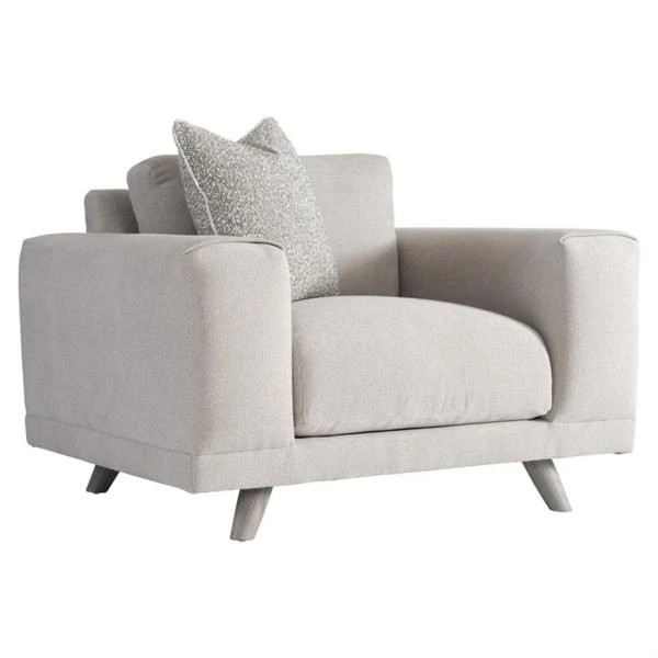 Large track arms with envelope pleat make the Maren Chair a modern statement. It is clean-lined and plush with a soft fabric and neutral tone for transitioning well with any space. One toss pillow that is textural and neutral too. Maren is minimalist in form and maximum in comfort.