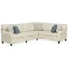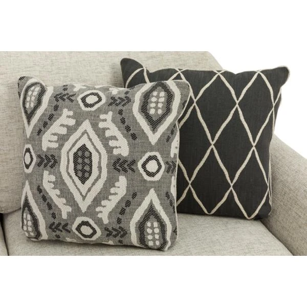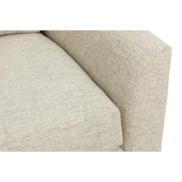Mason offers an updated look and clean lines without sacrificing comfort. The cuddler chaise is the ultimate cozy corner for binging TV, reading novels, or anything requiring long-term comfort. Upholstered in a lightly textured, Off-white weave, complimented by four toss pillows in Charcoal and Cream patterns.