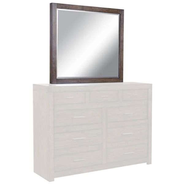 The Modern Loft Brownstone Mirror features beveled glass and a wooden frame.