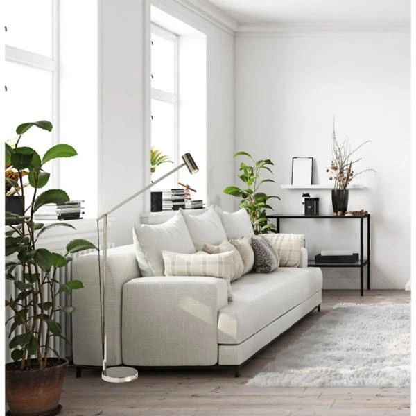 The Newman Task floor lamp is a modern adjustable lamp that features a polished nickel finish. It uses a G9 10 watt LED lightbulb.
