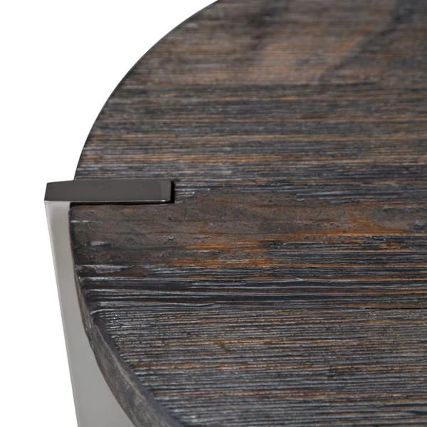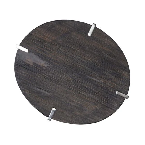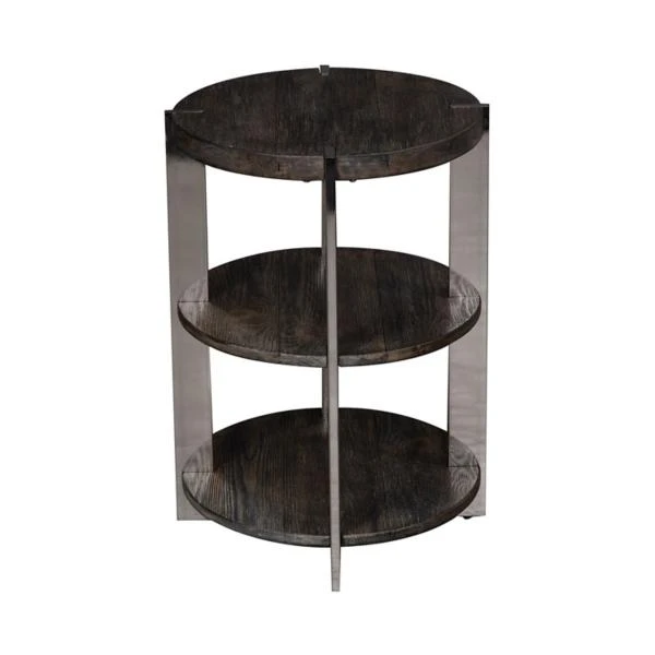 Accent your space with the Paxton Chair Side Table. Crafted of reclaimed pine solids. This piece features a charcoal finish with chrome plated metal, multiple shelves for additional storage, anchored by chrome plated legs. This statement side table will bring a unique flare to any modern, contemporary or sophisticated home.