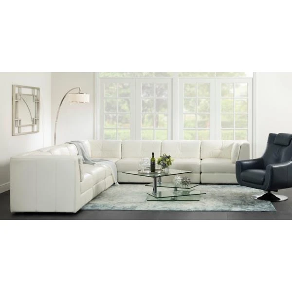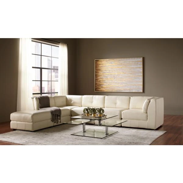 The Penthouse is a true modular that can be rearranged as needed to fit your room. Upholstered in 100% genuine leather. Shown in cream.