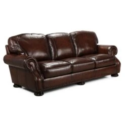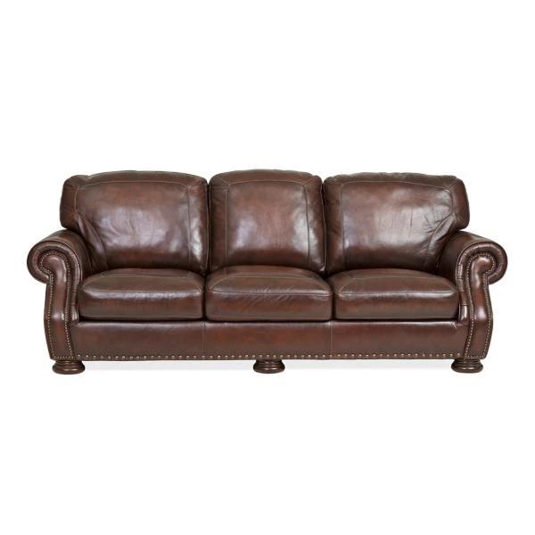 The Picasso II Sofa is traditionally styled. It has luxurious down-blend seat cushions, two sizes of nail head trim, rolled and flared arms and round feet. The 100% Genuine Leather is whiskey-hued and classic but casual. Picasso II is the gorgeous statement piece your home needs. It is sophisticated and comfortable.