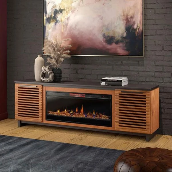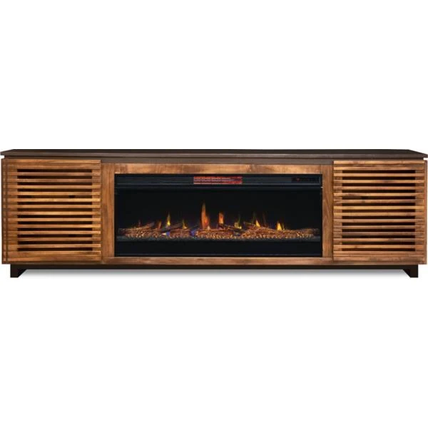 The Presidio 86″ Fireplace Console is cultured and chic, with a modern design. It holds up to a 98″ TV and has plenty of storage for media gear. The house-warming 42″ Fireplace Insert has clear crystals and a traditional log set with embers to keep you warm while binge-watching your favorite TV show or movie.