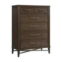 The Preston Chest is crafted of hardwood solids with oak veneers and finished in a inviting weathered vintage oak finish. Five drawer chest features English dovetail joinery and cedar lined bottom drawers.