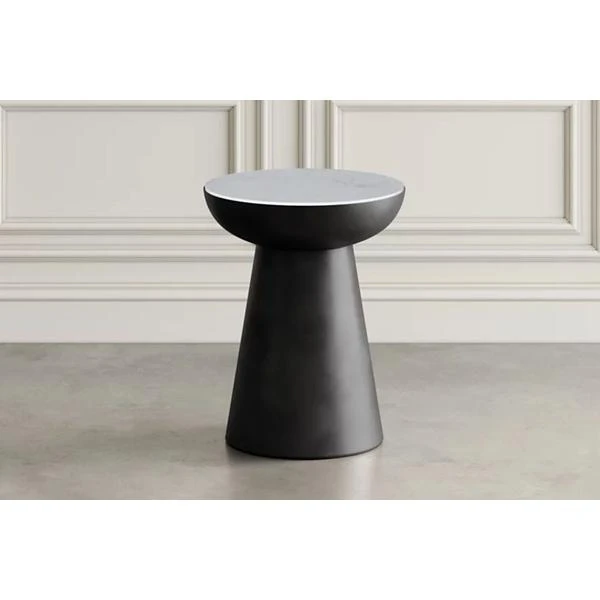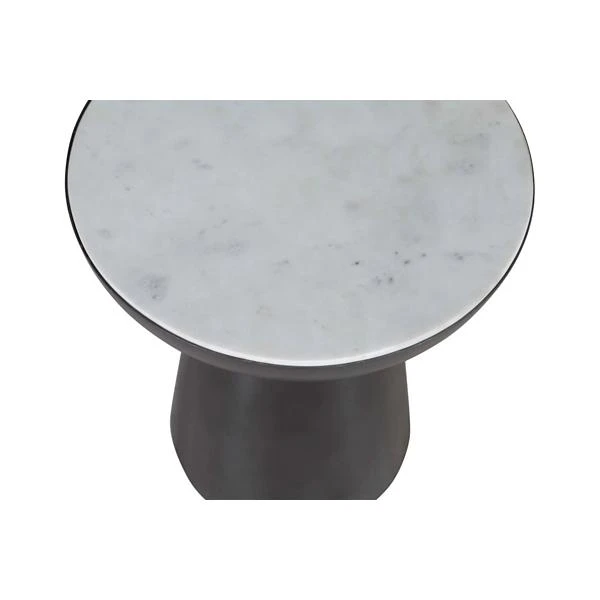 The Remy End Table features a gunmetal finished metal base, along with a solid white marble top. Since marble is a natural material, no two pieces will be alike and may contain color and texture variations.