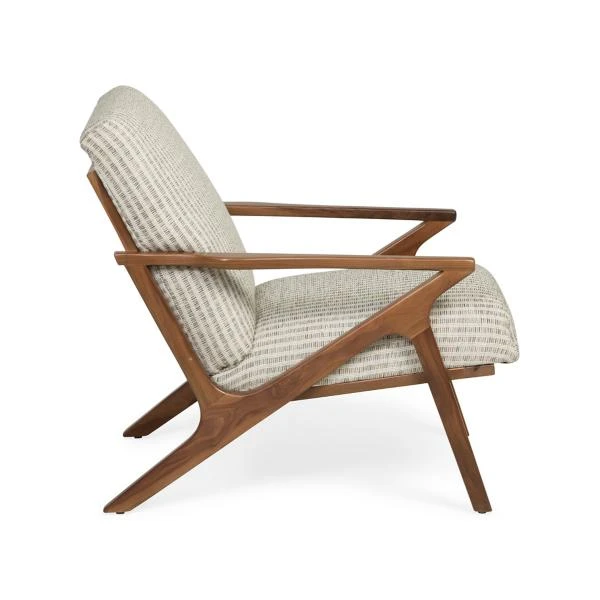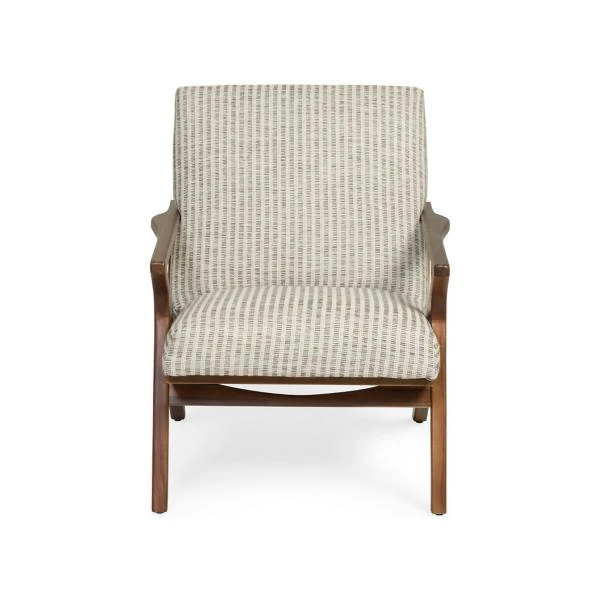 The Sanibel Accent Chair has modern lines with a trendy exposed wood frame. In a fabric that is neutral with tones of cream, brown, and caramel, the Sanibel Accent Chair will transition in any space but with high visual impact