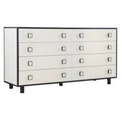 The Bernhardt Silhouette Dresser features 8 drawers with a two-tone eggshell and onyx finish adding a touch of drama to your room. Includes self-closing drawers and adjustable levelers. Anti-tip kit prevents dresser from tipping over by securing it to a wall.