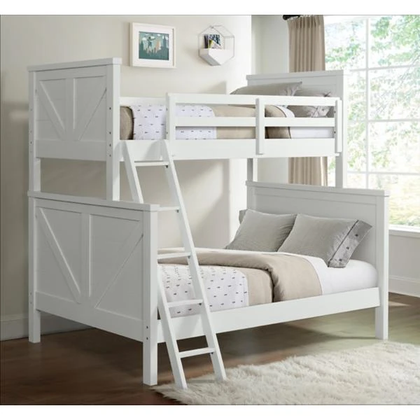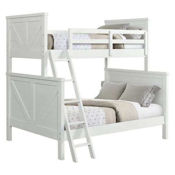 Give your child the bedroom they deserve with the Tahoe Twin Over Full Bunk Bed. Farmhouse style with beadboard accents and a Seashell colored finish. The Tahoe Twin Over Full Bunk is a low profile, platform bed does not require box spring.