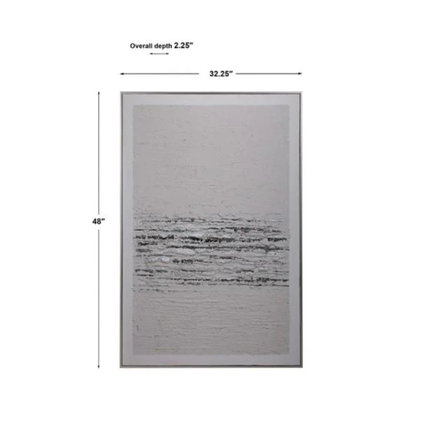 Thierry Wall Art – Stylish and sophisticated, this hand painting has noticeable textural accents with light gray, charcoal and silver leaf tones working together to create the perfect neutral artwork. A white border and silver gallery frame accent the piece. Due to the handcrafted nature of this artwork, each piece may have subtle differences.